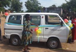 Katibu wa Afya Lupiyana Mpangala akiliandaa Gari la Kubeba Wagonjwa (Ambulance) kwa Ajili ya Kukabiziwa na Mbunge wa Kavuu Mh. Dr. Pudenciana Kikwembe....